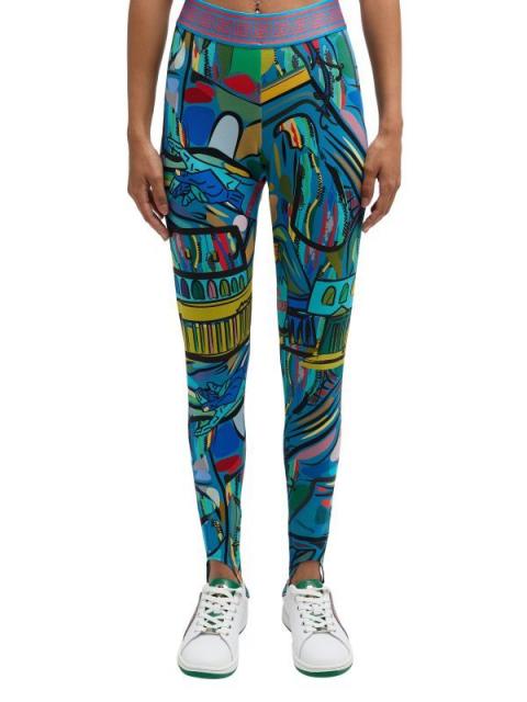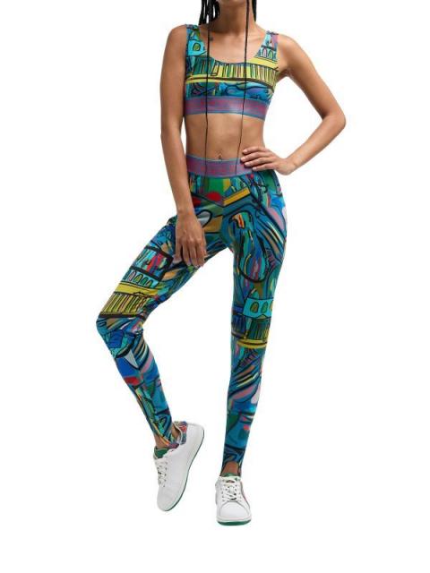 Diese trendige Leggings überzeugt mit seinem Druck in leuchtenden Farben. Es eignet sich perfekt für Sport und Freizeitaktivitäten. Für einen kompletten Look einfach kombinierbar mit passendem Body oder Bralett. Das Model ist 1.74m und trägt Gr. M Rippbund mit Mänderkranz Schriftzug auf der Rückseite