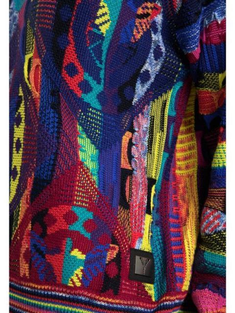 Dieses Muster überzeugt mit seiner Farbgewalt und erinnert eher an ein Kunstwerk als an einen Pullover. Das aufwendige Strickverfahren lässt den Pullover exklusiv und extravagant erscheinen. Die gerippten Abschlüsse und der Rundhalsausschnitt in Kontrastfarben geben dem Pullover neben der unregelmäßigen Garnkomposition eine schöne Struktur und Tiefe. Farbenfrohes Strickmuster Logoemblem am Saum Hochwertigste Garne Oversize – weiter geschnitten
